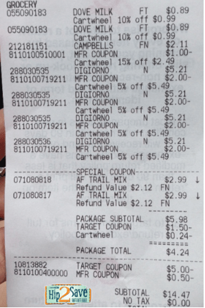 After all was said and done, she spent only $14.47 for all 9 items above (if you still have the Campbell’s Go Soup Target Store coupon, you’ll pay only $13.47!). Sweet!
