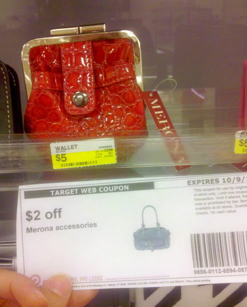 I’m not a fan of the wallets either, but I have seen Merona Scarves on clearance for $5 at both my local Targets, making them $3. Much better way to spend the $3, if you ask me.