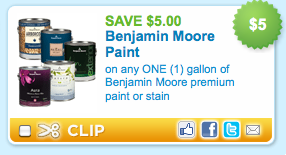 * Save $5/1 gallon of Benjamin Moore premium paint or stain