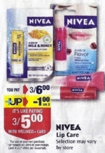 My Rite Aid had some of the Nivea lip cares on clearance for 50% off…averaging about $1.50 per stick. They were located near the clearance lotions.