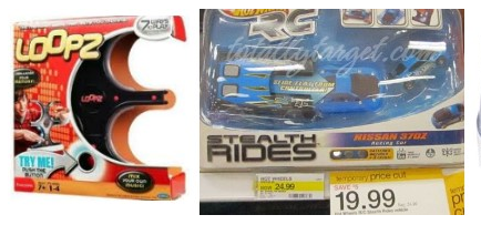 Save another $5 on the HotWheels Stealth R/C Toy by going to the printable toy section of the Target page and selecting the $5 off any Hour Wheels you valued at 19.99 or more. Final cost: $5! Super excited, my son is going to love this!