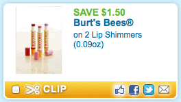 Yippee! Hurry on over to Coupons.com to print a new $1.50/2 Burt’s Bees Lip Shimmers coupon (use zip 90210 if necessary). Then hang on to this coupon to score the following deal at Rite Aid starting 5/6: