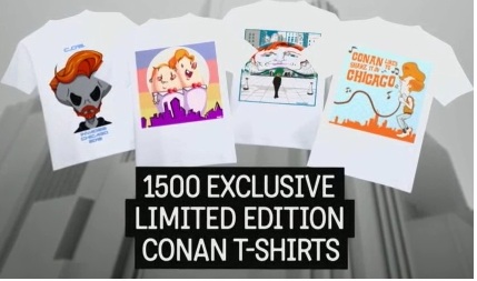 If you are in the Chicago area from today-Thursday, you have another opportunity to win a free t-shirt. Each night through June 14th, watch CONAN and get the secret code. Then find one of the 10 CONAN vending machines scattered throughout metro Chicago and enter the correct code in each machine to win a CONAN T-shirt, while supplies last.