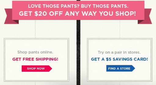 Now through 9/3, Talbots is offering up a nice promotion! Whenever you try on a pair of pants in-store, you’ll score a FREE $5 savings card. If you end up purchasing those pants, you’ll score $20 off those pair of pants at check out! Or, if you choose to shop online, you can save an extra $20 automatically and get FREE shipping! Not bad!