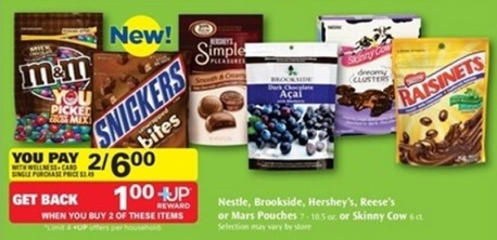 Nestle, Brookside, Hershey’s, Reese’s or Mars Pouches 7 – 10.5 oz or Skinny Cow 6 ct 2/$6