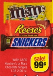 Hershey’s or Mars chocolate singles 1.08-2.06 oz $0.99