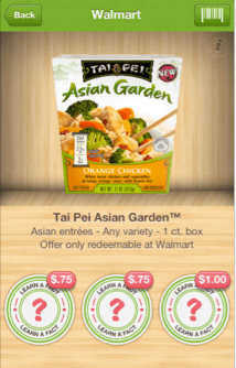 Yay – there is a new link available for Tai Pei Entrees! Head on over to Coupons.com and use zip code 90210 (CA) to print a Buy 1 Get 1 Free Tai Pei Asian Garden or Tai Pei Single Serve Entree coupon. Even sweeter, if you haven’t already, you can still earn up to $2.50 cash back from Ibotta for buying any Tai Pei Asian Garden entrees at Walmart (under the Walmart Store Extras tab)!
