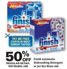 Finish Automatic Dishwashing Detergent or Jet Dry RInse Aid 50% Off