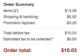 UPDATE – Be sure to add BOTH items to your cart – one set priced at $6.49 and the other at $6.79. You must add both for it to apply the promo code.