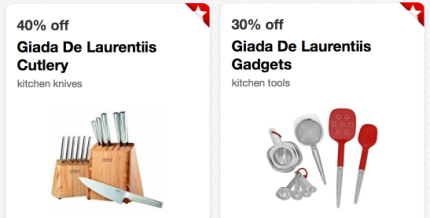 Shopkick app has a 25% off Giada kitchen item as well. No exclusions, so you could probably use it to save a little more on the knives when combined with cartwheel!