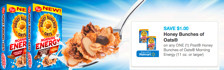 Use the $1/1 Post Honey Bunches of Oats Morning Energy Cereal coupon here