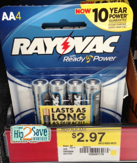 Use the $3/1 Rayovac Alkaline Batteries coupon found here (Gone! 🙁 )