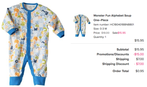 As a deal idea, you could grab this Monster Fun Alphabet Soup One-Piece for only $0.95 shipped after using the promo code WELCOME15 … what a rockin’ deal! 🙂