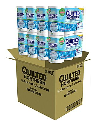 Here’s a great toilet paper stock-up deal! Head on over to Staples.com where they are offering up Quilted Northern Ultra Soft & Strong 2-Ply 48 Rolls/Case for only $21.99 (regularly $29.99!). Even sweeter, you can use the code 69841 to save an additional 15% off your order, taking the cost down to $18.69.