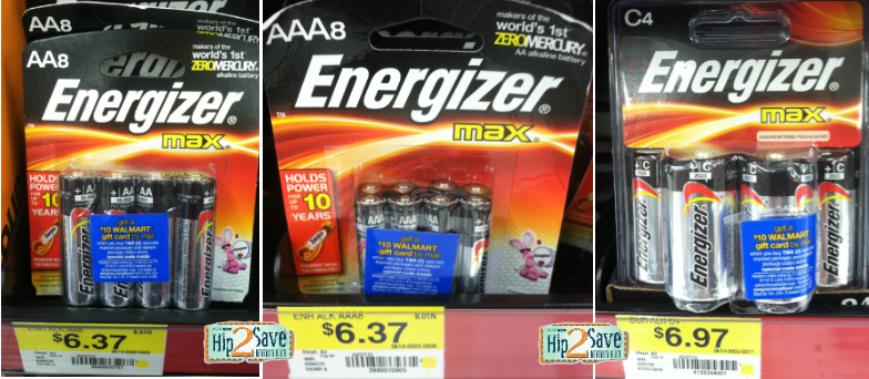 Through 8/14/2014, whenever you buy 2 specially marked packs of Energizer MAX batteries at Walmart, you’ll be able to submit for a FREE $10 Walmart Gift Card (I received mine in the mail…see above! 🙂 ). Pair this offer with coupons and you can snag a great deal on batteries…