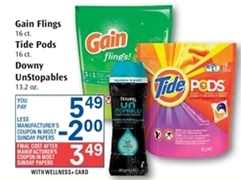 Or use the two $2/3 Tide Pods, Gain Flings, Downy Unstopables, Bounce Bursts or Gain Fireworks coupons found in the 7/6 PG (note that some regions received $2/3 coupons)