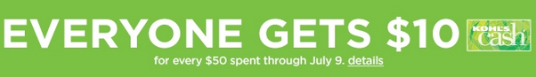 And through July 9th only, you’ll earn $10 Kohl’s Cash for every $50 spent in store, online & at the kiosk on all sale, regular and clearance-priced merchandise. You can then redeem your Kohl’s Cash coupon from July 10th – 20th.