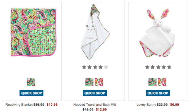 Today only, head over to Vera Bradley where they are having a Buy One Get One Free Sale – discount automatically applied at checkout. This sale makes for some crazy deals on handbags, diaper bags, baby clothing and more! Prices are starting at just $1.98 and when you combine those prices with this sale…WOW! Note that shipping starts at $8 or is free on orders of $75 or more. Come back and let us know what bargains you snatch up!