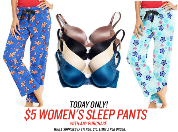 Plus, today only, you can score these cute Women’s Sleep Pants for ONLY $5 with ANY purchase (reg. $15; must add to your cart to see discount – limit 2 per order)! And, as I mentioned before, OneHanesPlace.com (formerly Maidenform) is still offering up $5 Bras, Shapewear, Cami’s, Panties & More! That means you can snag a $5 Bra AND a pair of Sleep Pants for only $10 shipped to your door…awesome!