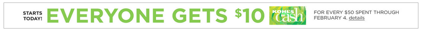 AND everyone earns $10 Kohl’s cash for every $50 spent through February 4th (which will make your total only $57.99)! You can then redeem this Kohl’s cash from February 5th-14th. And the Kohl’s Cash that you earned from January 15th – January 19th is redeemable in store, online & at the kiosk through TODAY only. Use your Kohl’s Cash coupon at your nearest Kohl’s Department Store or enter your coupon number and pin at checkout on Kohls.com.