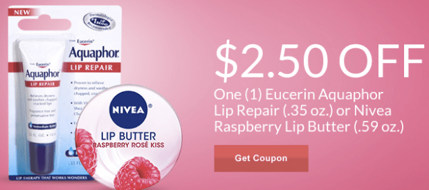 Rite Aid shoppers! Head over to the Rite Aid Facebook page and click on the Exclusive Deals tab to print a new Rite Aid store coupon valid for $2.50/1 Eucerin Aquaphor Lip Repair OR Nivea Raspberry Lip Butter – expires 2/27/15. This Nivea Lip Butter is regularly priced at $3.99 so just $1.49 after this coupon! Or combine this store coupon with a manufacturer’s coupon for an even better deal…