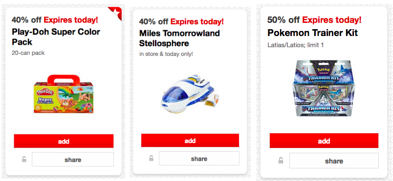 Of course the time I want to take advantage of the cartwheel toy deal I’m no where near a target 🙁