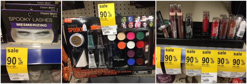 I scored! I walked to get Nyquil, & ended up with a cart FULL of Halloween goodies. Used $10 in points. Paid $11 & some change. Lots of makeup, lootbags, TY beanies for .99, Tsums Tsums, decor. It was a rough trip home, but so worth it. Best deal was a light up hanging pumpkin that talks for $2.49. Happy camper!