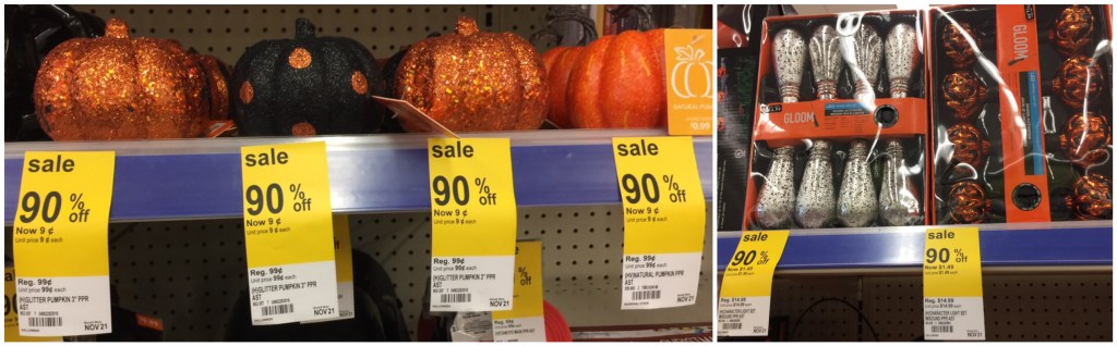 I live in GA and all Halloween decor was 90% off at my local store. I got a haunted singing telephone for $1.99, a skelton playing banjo for $1.49, a snoppy pumpkin snowglobe for $1.49, a halloween snoopy nutcracker for $0.99, a light up raven statue for $1.29, pumpkin light up lawn stakes for $0.99, a cat lantern for $1.29, and a day of the dead couple statue for $1.29. Plus I had $2 in walgreens extra bucks. Loved these deals!