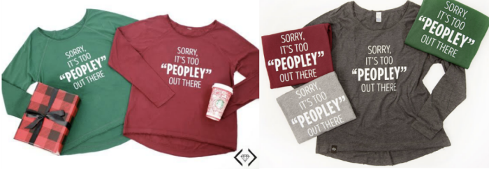 Now through November 20th, Cents of Style is offering up our exclusive Sorry, It’s Too “Peopley” Out There Slouchy Tee with more color options (think holiday gifts! 🎁 ) for only $19.95 shipped – regularly $34.95! PLUS, we’re also introducing a new Gray Sweatshirt for $32.95 shipped (regularly $47.95) – just be sure to use promo code HIPPEOPLE2 at checkout to score your Tee or Sweatshirt at these fantastic prices.