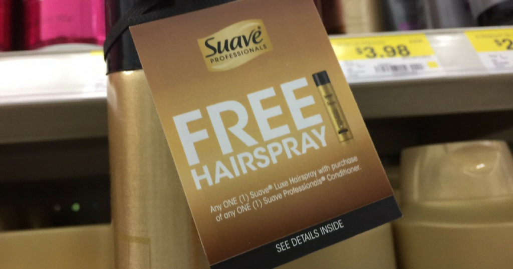 Also, you may be able to score FREE hairspray with the purchase of Suave Gold Conditioner if your Walmart has the hang tags, pictured above, on the hairspray at your store.