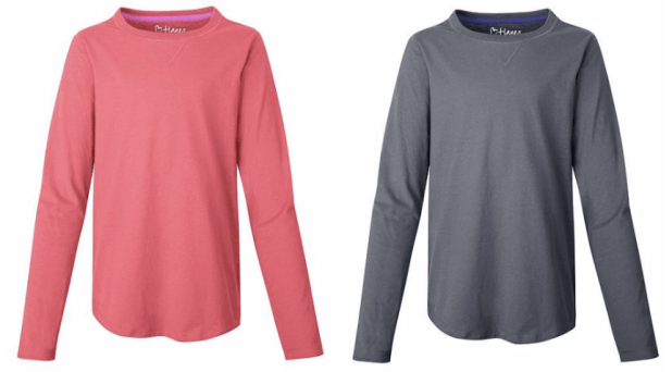 Hanes Girls’ V-Notch Shirttail Long-Sleeve Crewneck T-Shirt