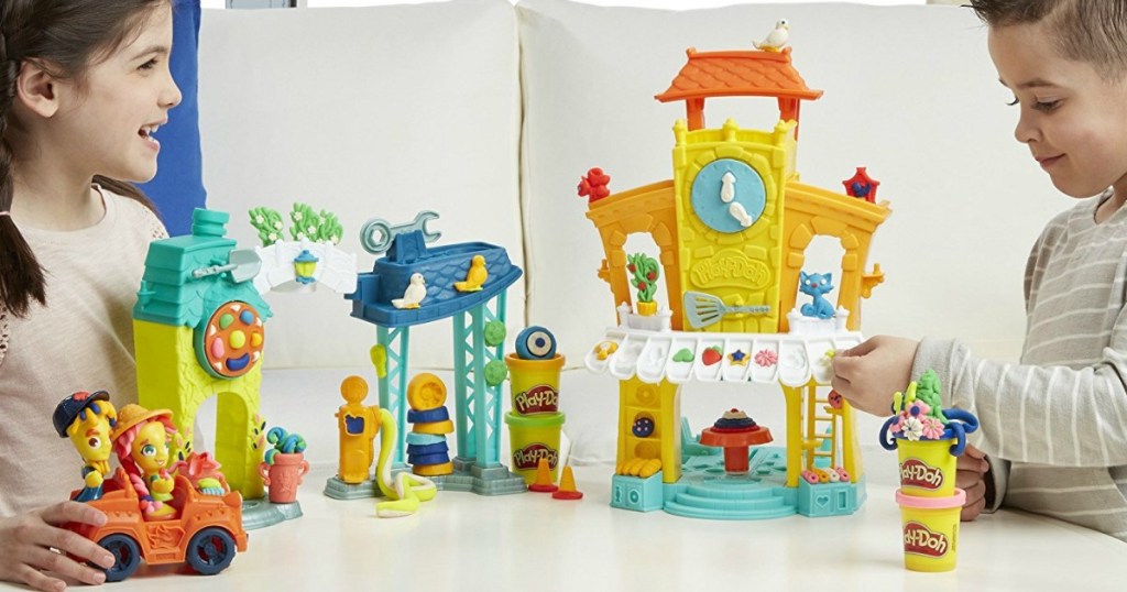 Hop on over to Amazon where you can score this Play-Doh Town 3-in-1 Town Center for just $10.03 $11.61 $11.49 (regularly $39.99). This town center features a mechanic shop, flower shop and restaurant and includes 2 figures with hats, chef hat, vehicle, 2 stampers, spatula, spade, wrench, and 8 cans of Play-Doh Brand Modeling Compound.