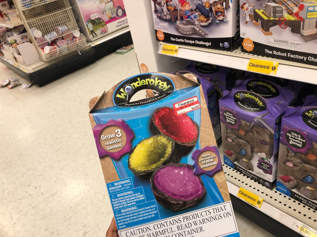 I wouldn’t recommend the Wonderology and Rube Goldberg toys (which is why they were marked down). I bought them over the summer as birthday gifts, and they turned out to be disappointing. The crystal grow kit didn’t turn out as pretty as in the picture on the box and my daughter quickly lost interest. One of the Rube Goldberg kits was made of very cheap, light plastic that refused to stay in place for the chain reaction to occur. I picked up a few Num Noms mystery containers on clearance.
