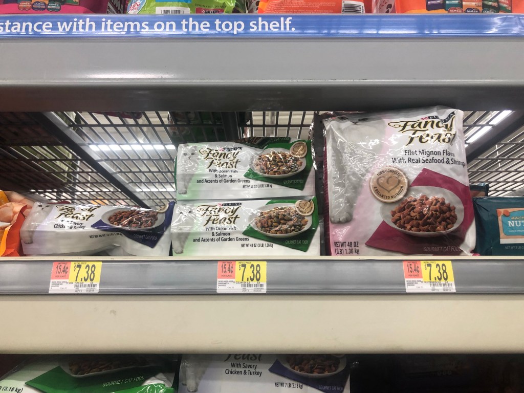 - $2/1 3lb or larger bag of Fancy Feast dry cat food, any variety