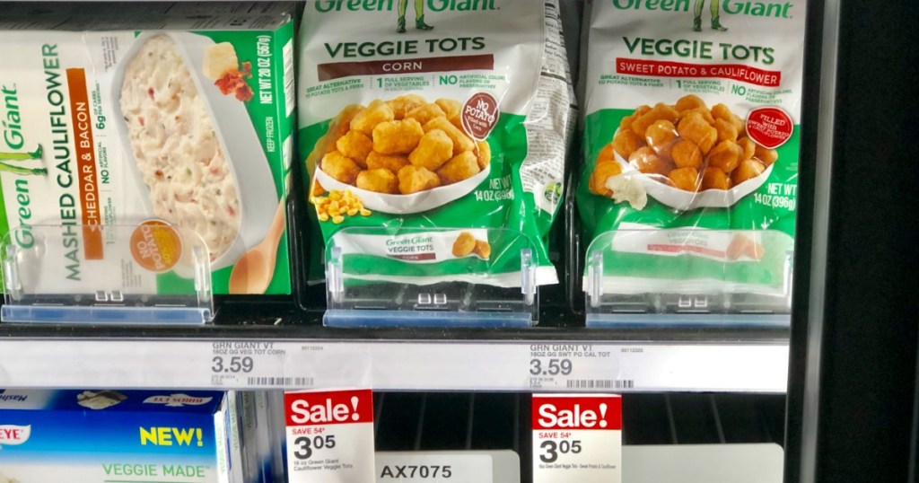 Use two $1/1 Green Giant Veggie Tots, Riced Veggies, Mashed Cauliflower or Roasted Veggies printable coupons