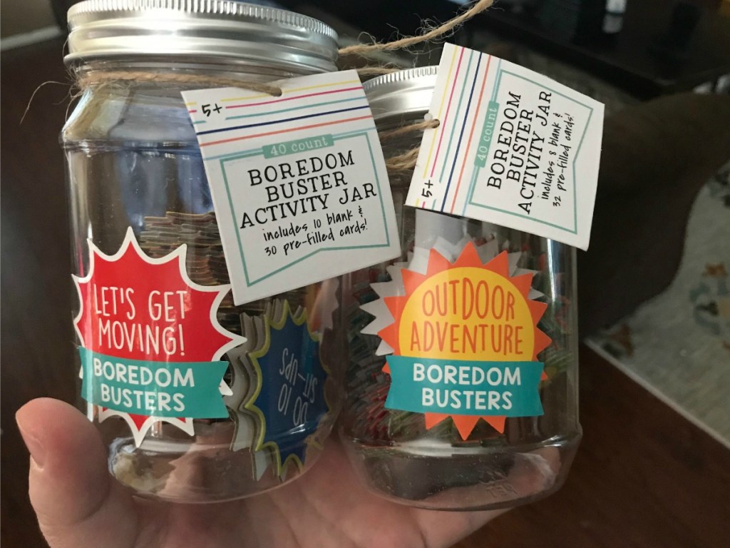 We bought 4 different boredom buster jars & my kids think they’re great! We also picked up the scavenger hunt bag to use this Spring