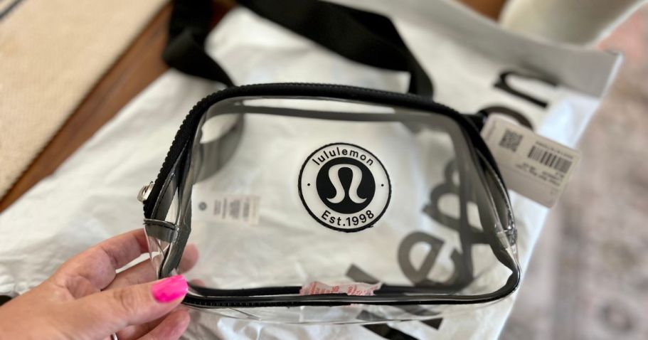 These affordable, high-quality Athleta belt bags are similar in size to more pricey brands. They are available in several colors, including a clear option (perfect for concerts and festivals). They have a front zipper pocket and plenty of room for all of your daily essentials!