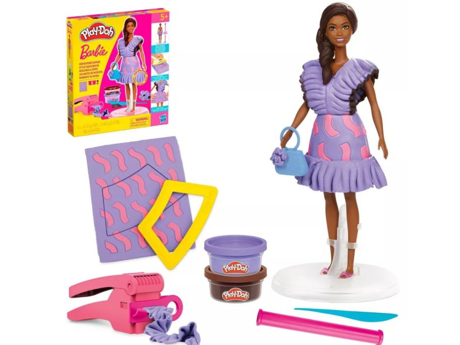 Barbie fans can use the Play-Doh compound, tools, molds, pattern sheets, and more to create unique designs for their Barbie dolls.