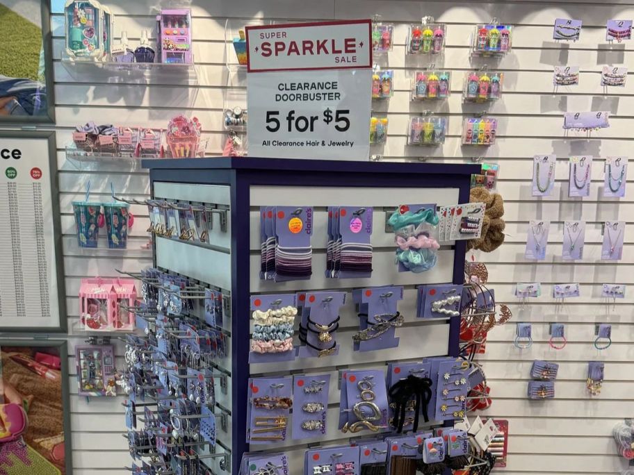 For a limited time, head to Claire’s where they are offering a 5/$5 Sale on ALL hair and jewelry clearance items in-store only. Note that you must purchase in groups of 5 to get the discount.