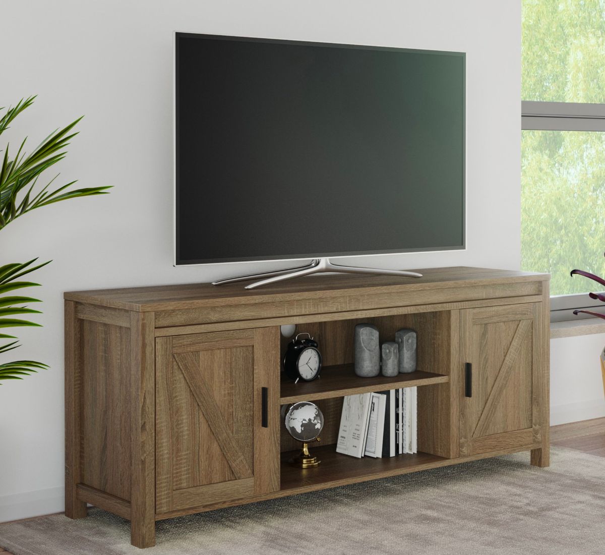 Woven Paths Modern Farmhouse Barn Door TV Stand 65″ –7 color choices