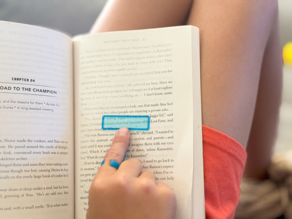 Just slide the wand into the ring and slip it onto a child’s index finger to highlight text while reading, making it easier to focus on single words and small phrases. They are great for early readers or for children who struggle with ADHD or dyslexia.