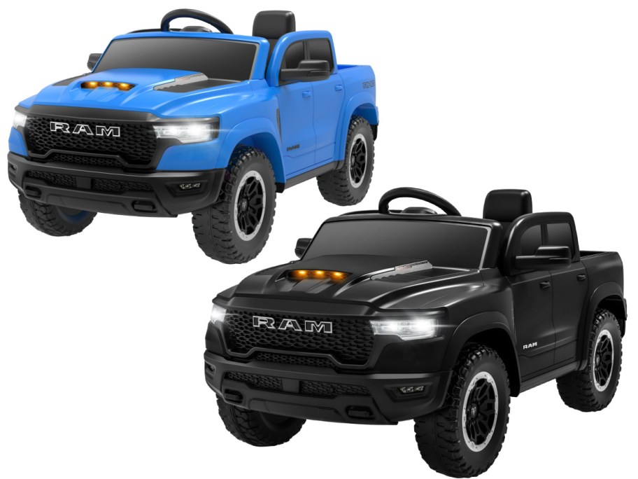 These ride-ons are basically tiny trucks for kids! They each have two seats, all-terrain wheels, seat belts, locking doors, Bluetooth radios, and parents can even hop in via remote control to steer if needed. They’re modeled after real Ford, Chevy, and RAM vehicles, with dual motors and soft-start acceleration for a smooth ride.
