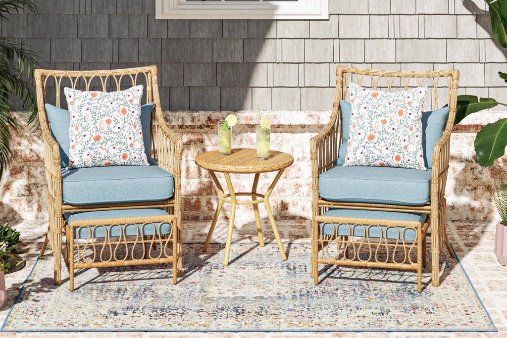 wicker loveseat and chairs on a back patio