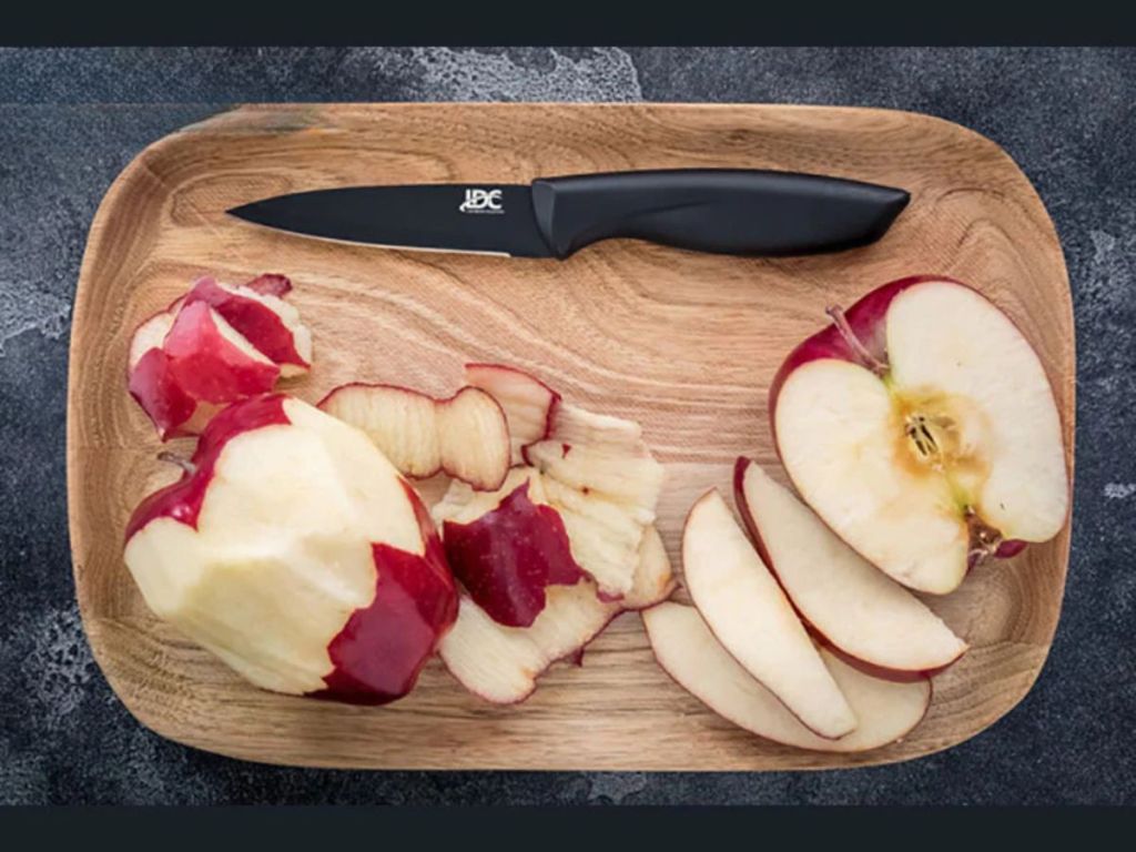 This durable knife set includes knives that are made from rust-resistant stainless steel and feature a non-stick coating. The non-stick coating makes them easy to clean and keeps food from sticking to them.