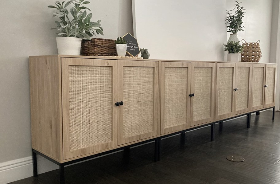 Our Hip sidekick, Melinda, owns this affordable caned sideboard from Walmart. Her double-door style is under $200 and comes in three different finishes, making these just a few dollars more.