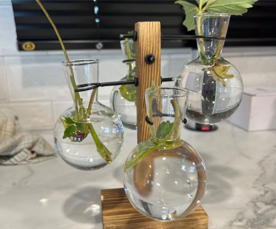 Not only do these vessels come in handy for when you want to propagate a plant, but they would look so cute in those odd spaces that could use a small piece of decor. Plus, propagating is a cheap way to increase your plant life.