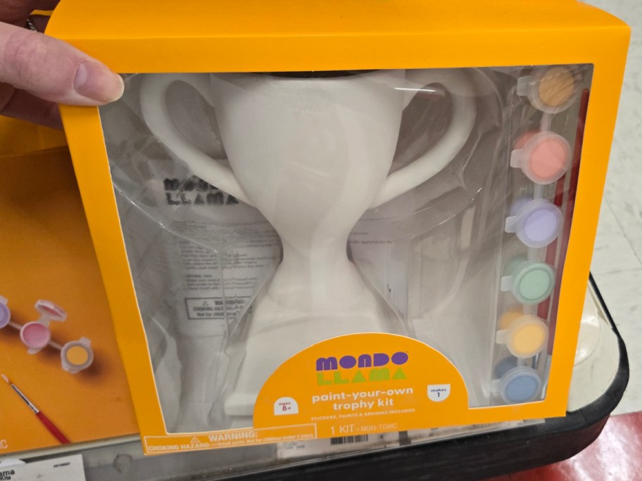hand holding Mondo Llama Mother's Day Craft Ceramic Trophy Painting Kit