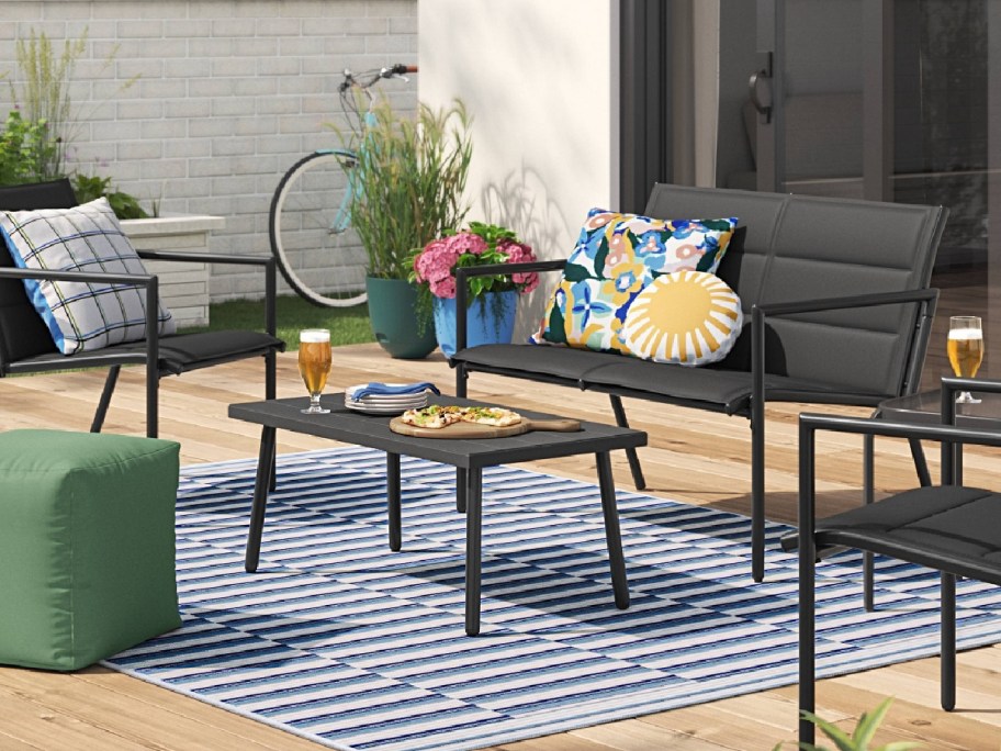 Room Essentials Padded Sling Patio Conversation 4 Piece Set