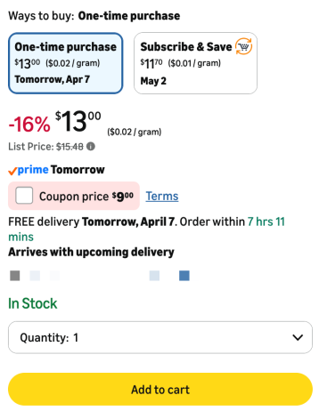 Opt to Subscribe & Save (5-10% off + free shipping w/ Prime)