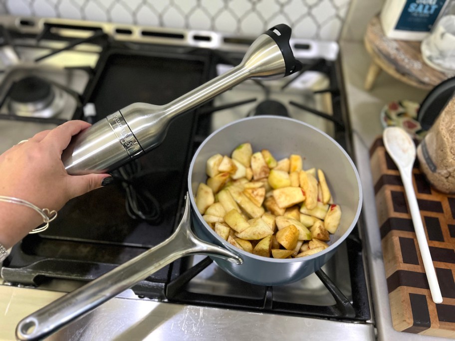 If you don’t have an immersion blender yet, they are so handy to have! You can blend up food right in the pot, bowl, or jar. No need to transfer to a blender. It’s so convenient for making soups, pesto, pumpkin puree, homemade mayo, and more! Plus, with the whipped cottage cheese craze, you can do that right in the container using this. I love it!